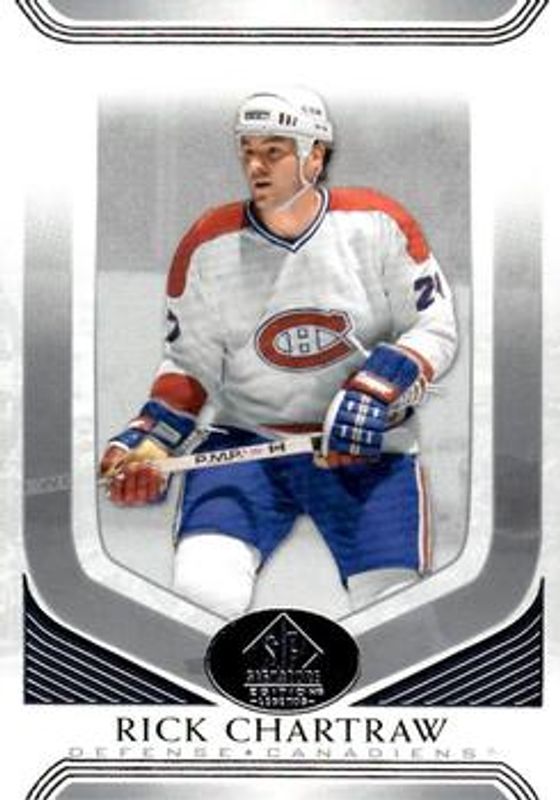 Rick Chartraw's Hockey cards are available in at least 5 sets. Rick Chartraw's biggest 7-day price movers are 2020 SP Signature Edition Legends #181 Base /99, 2020 SP Signature Edition Legends #181 Black /10, and 2020 SP Signature Edition Legends #181 Silver Script.