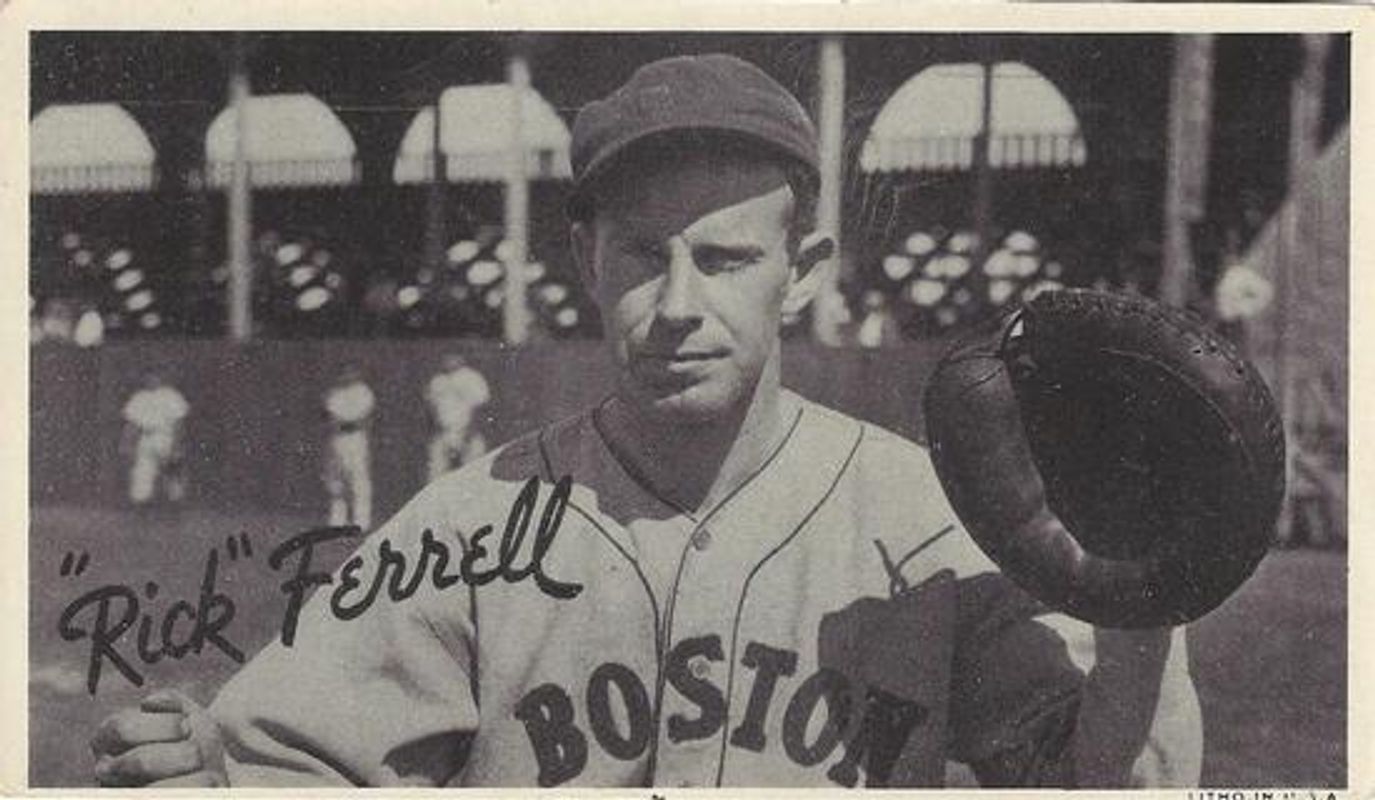 Rick Ferrell's Baseball cards are available in at least 35 sets. Rick Ferrell's biggest 7-day price movers are 1936 Goudey Wide Pen Premiums (R314 Type 1) Base, 1936 Goudey (R322) Base, and 1993 Upper Deck All-Time Heroes #49 Base.