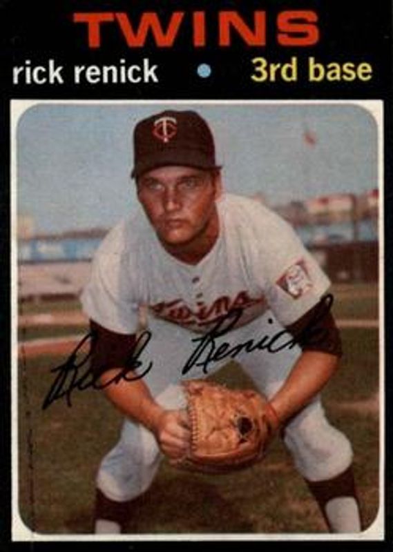 Rick Renick's Baseball cards are available in at least 6 sets. Rick Renick's biggest 7-day price movers are 1971 O-Pee-Chee #694 Base, 1971 Topps #694 Base, and 1968 Venezuelan #301 Base.
