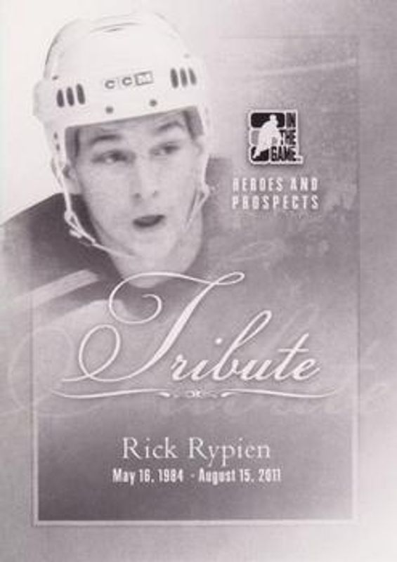 Rick Rypien's Hockey cards are available in at least 9 sets. Rick Rypien's biggest 7-day price movers are 2011 In The Game Heroes & Prospects #198 Base, 2006 In The Game Heroes & Prospects #46 Spring Expo /10, and 2006 In The Game Heroes & Prospects #A-RR Autographs.