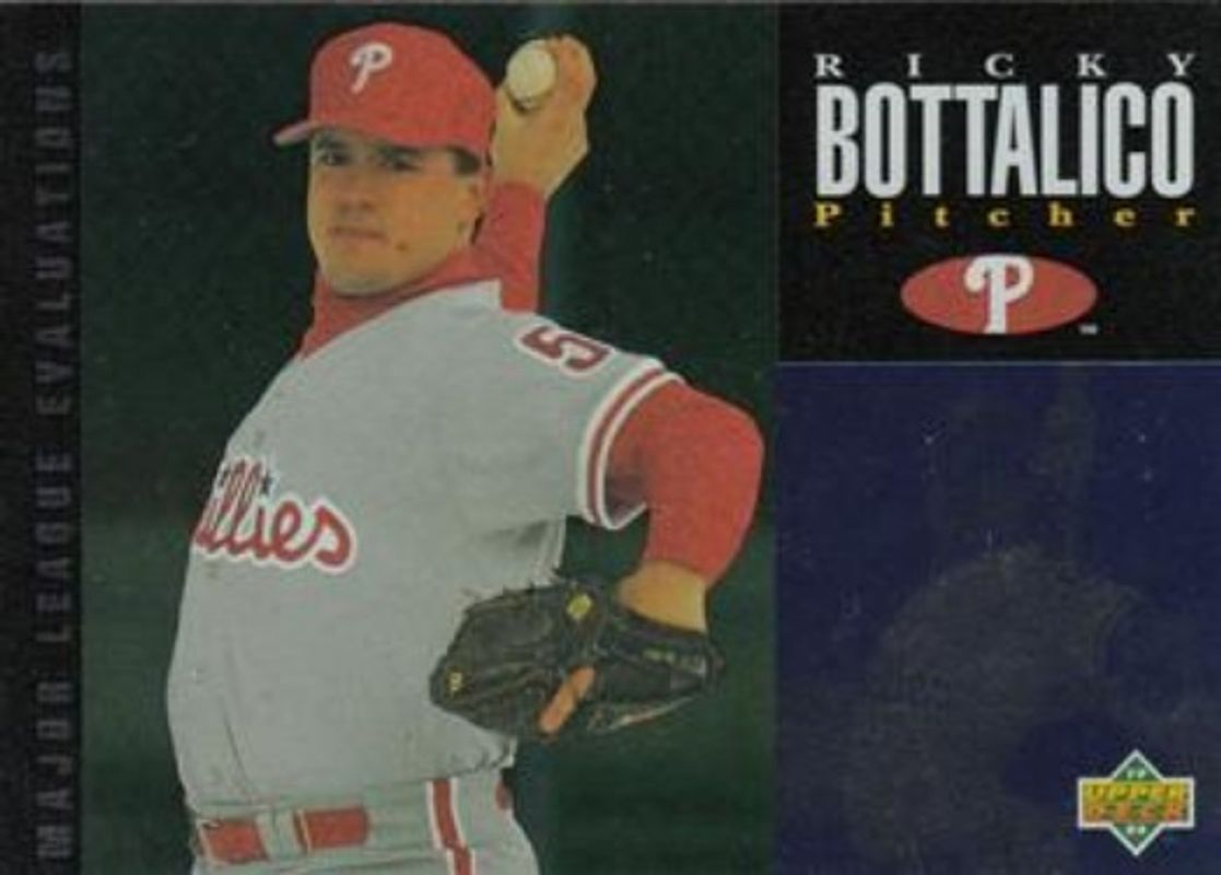 Ricky Bottalico's Baseball cards are available in at least 30 sets. Ricky Bottalico's biggest 7-day price movers are 1994 Upper Deck Minor League #148 Base, 1994 Upper Deck Minor League #225 Base, and 1994 Upper Deck Collector's Choice #653 Silver Signatures.