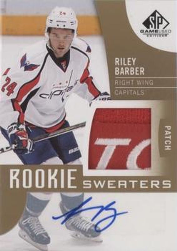 Riley Barber's Hockey cards are available in at least 11 sets. Riley Barber's biggest 7-day price movers are 2017 SP Game Used #RS-RB Inked Rookie Sweaters Patch Autographs /49, 2017 SP Game Used #131 Blue Autographs, and 2017 SP Game Used #131 Autographs /92.