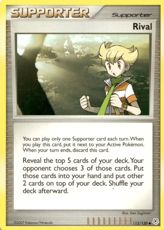 Rival's Pokemon cards are available in at least 2 sets. Rival's biggest 7-day price movers are 2007 Diamond & Pearl #113/130 Base, 2007 Diamond & Pearl #113/130 Reverse Holo, and 2007 Diamond & Pearl: Secret Wonders #124/132 Base.