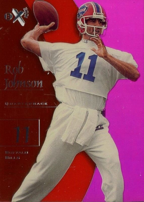 Rob Johnson's Football cards are available in at least 27 sets. Rob Johnson's biggest 7-day price movers are 1998 Skybox E-X2001 #30 Essential Credentials Future (/31), 1998 Skybox E-X2001 #30 Essential Credentials Now (/30), and 1998 SPx Finite #200 Base /7200.