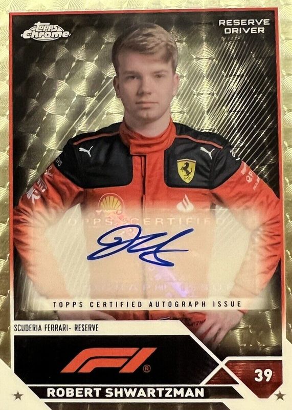Robert Shwartzman's Racing cards are available in at least 4 sets. Robert Shwartzman's biggest 7-day price movers are 2023 Topps Chrome Formula 1 #CAC-RSH Autographs - Superfractor /1, 2023 Topps Chrome Formula 1 #CAC-RSH Autographs - Gold Wave Refractor /50, and 2020 Topps Chrome Formula 1 #F1A-RS Autographs - Red Refractor /5.