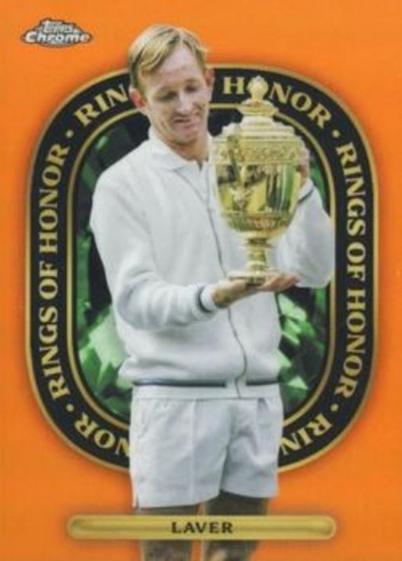 Rod Laver's Tennis cards are available in at least 1 sets. Rod Laver's biggest 7-day price movers are 2021 Topps Chrome #ROH-4 Rings of Honor - Orange /25, 2021 Topps Chrome #CA-RL Chrome Autographs - Orange /25, and 2021 Topps Chrome #ACE-4 Aces - Red /5.