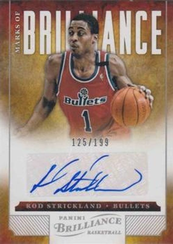 Rod Strickland's Basketball cards are available in at least 143 sets. Rod Strickland's biggest 7-day price movers are 2012 Brilliance #55 Marks of Brilliance /199, 2012 Momentum #48 Monumental Marks - Black /1, and 2012 Momentum #48 Monumental Marks - Red /5.