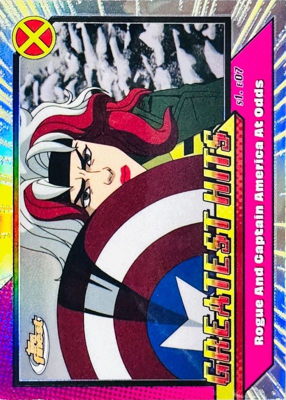 Rogue And Captain America At Odds' Marvel cards are available in at least 1 sets. Rogue And Captain America At Odds' biggest 7-day price movers are 2025 Topps Finest X-Men 97 #GH-12 Greatest Hits, 2025 Topps Finest X-Men 97 #GH-12 Greatest Hits - Laser Refractor /199, and 2025 Topps Finest X-Men 97 #GH-12 Greatest Hits - X-Fractor /97.