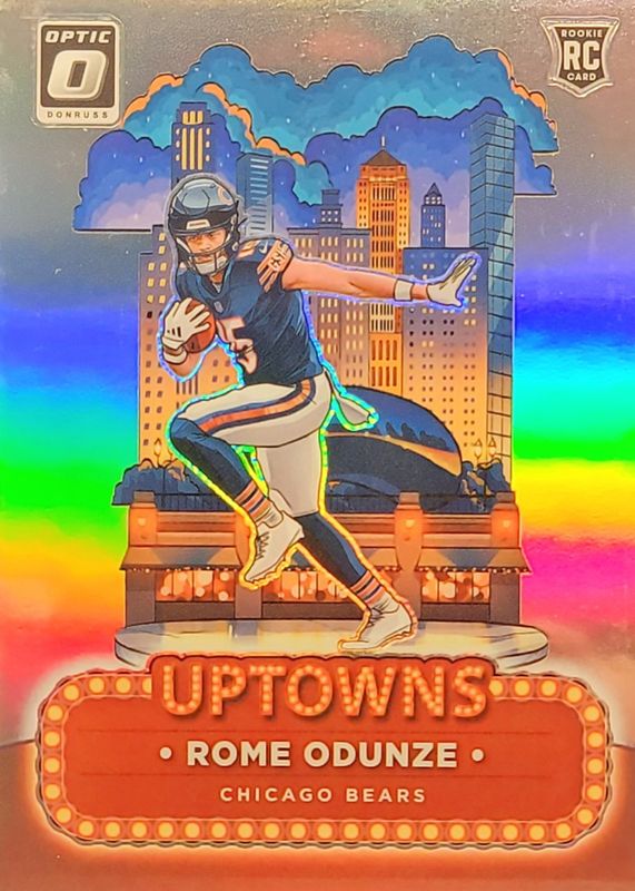 Rome Odunze's Football cards are available in at least 62 sets. Rome Odunze's biggest 7-day price movers are 2024 Prizm #385 Green, 2024 Prizm #6 Prizm Flashback Rookies - Silver, and 2024 Prizm #9 Portals - Green Ice.