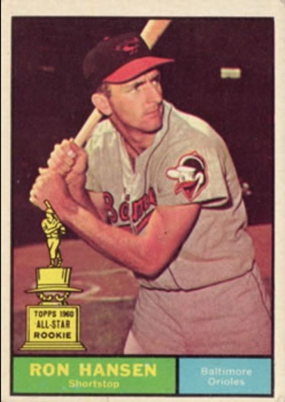 Ron Hansen's Baseball cards are available in at least 21 sets. Ron Hansen's biggest 7-day price movers are 1961 Topps #240 Base, 1963 Fleer #2 Base, and 1965 O-Pee-Chee #146 Base.