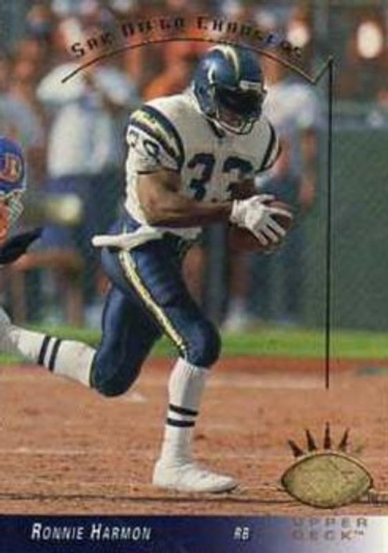 Ronnie Harmon's Football cards are available in at least 25 sets. Ronnie Harmon's biggest 7-day price movers are 1993 SP #229 Base, 1994 Pinnacle Select #53 Base, and 1994 Topps Finest #95 Base.