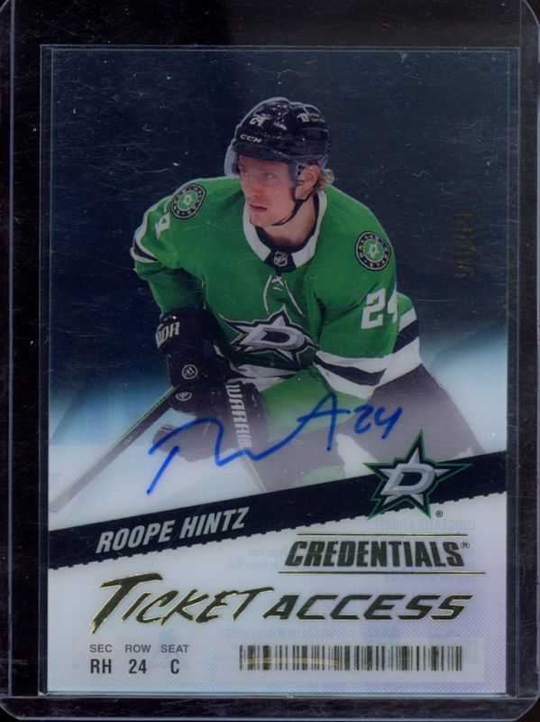 Roope Hintz's Hockey cards are available in at least 80 sets. Roope Hintz's biggest 7-day price movers are 2024 Upper Deck Credentials #TA-RH Acetate Ticket Access /99, 2024 Upper Deck Clear Cut #PSA-RH 2000-01 SP Authentic Power Skaters, and 2024 Upper Deck Clear Cut #PSA-RH 2000-01 SP Authentic Power Skaters - Blue /10.