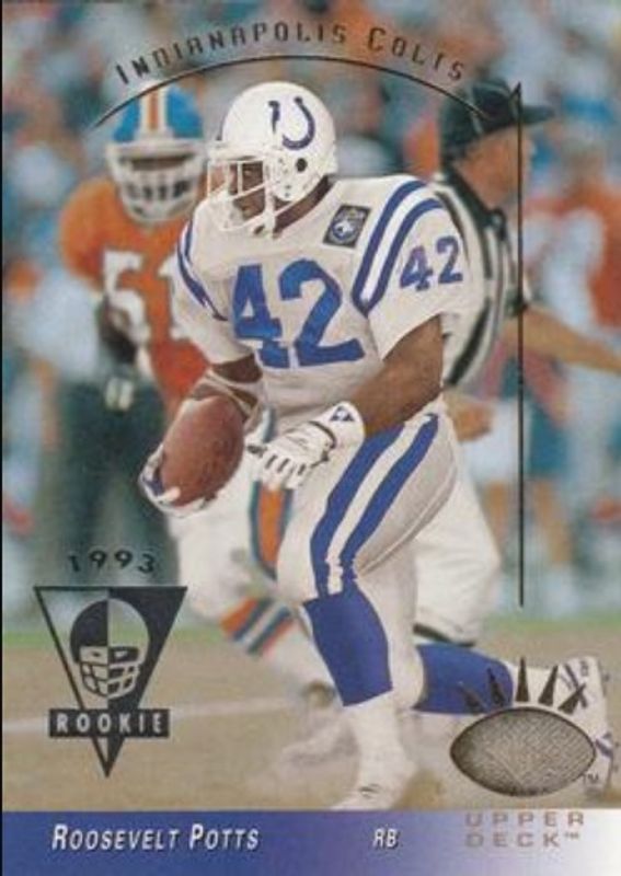 Roosevelt Potts' Football cards are available in at least 17 sets. Roosevelt Potts' biggest 7-day price movers are 1993 SP #117 Base, 1994 Pinnacle Select #23 Base, and 1994 Topps Finest #220 Base.