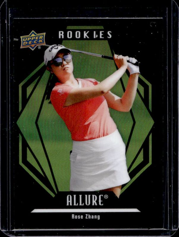 Rose Zhang's Golf cards are available in at least 3 sets. Rose Zhang's biggest 7-day price movers are 2024 Upper Deck Portfolio #AR-RZ Allure Black Rainbow Parallel Rookies, 2024 Upper Deck Portfolio #AR-RZ Allure Gold Rainbow Parallel Rookie Autographs /10, and 2024 Upper Deck Portfolio #AR-RZ Allure Red Rainbow Parallel Rookie Autographs /199.