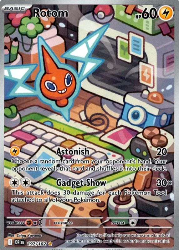 Rotom's Pokemon cards are available in at least 21 sets. Rotom's biggest 7-day price movers are 2025 Japanese Scarlet & Violet: Heat Wave Arena #074/063 Art Rare, 2025 Scarlet & Violet: Destined Rivals #077/182 Reverse Holo, and 2008 Diamond & Pearl: Great Encounters #007/106 Holo.