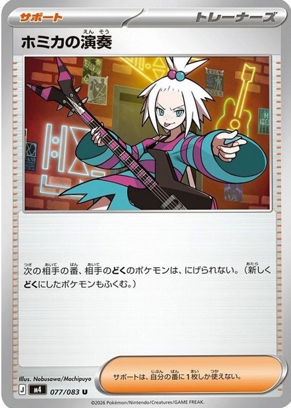 Roxie's Performance's Pokemon cards are available in at least 1 sets. Roxie's Performance's biggest 7-day price movers are 2026 Japanese Mega: Ninja Spinner #77/83 Base, 2026 Japanese Mega: Ninja Spinner #110/83 Super Rare (Full Art), and 2026 Japanese Mega: Ninja Spinner #119/83 Special Art Rare.