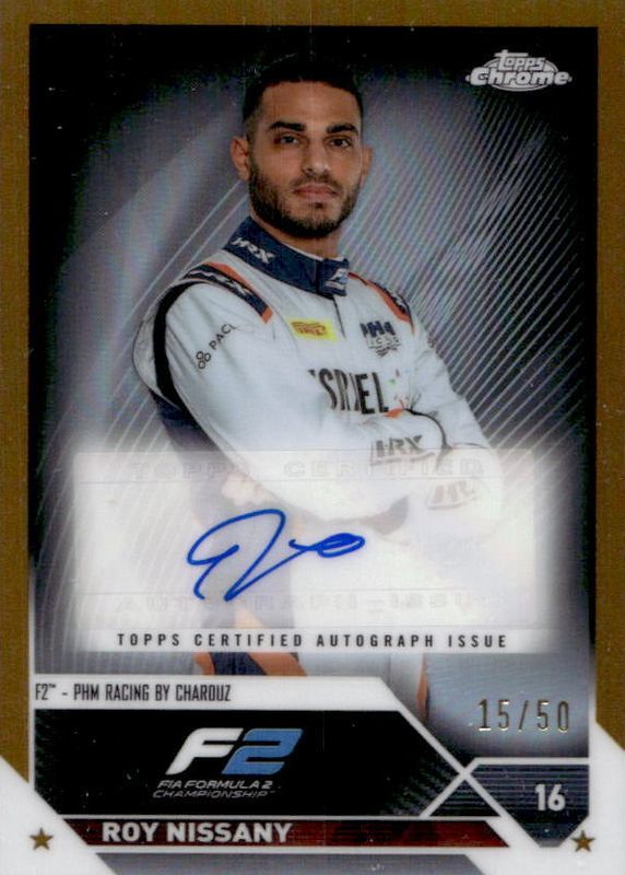 Roy Nissany's Racing cards are available in at least 6 sets. Roy Nissany's biggest 7-day price movers are 2023 Topps Chrome Formula 1 #CAC-RN Autographs - Gold Refractor /50, 2023 Topps Chrome Formula 1 #CAC-RN Autographs - Green Refractor /99, and 2022 Topps Chrome Formula 1 #CAC-RN Autographs - Orange Refractor /25.