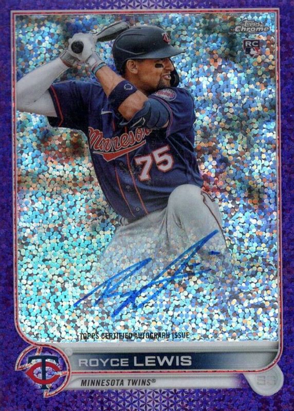 Royce Lewis' Baseball cards are available in at least 52 sets. Royce Lewis' biggest 7-day price movers are 2022 Topps Chrome Update #USC143 Purple Refractor, 2022 Topps Chrome #RA-RL Rookie Auto - Purple Speckle Refractor /299, and 2022 Topps Chrome #RA-RL Rookie Auto.