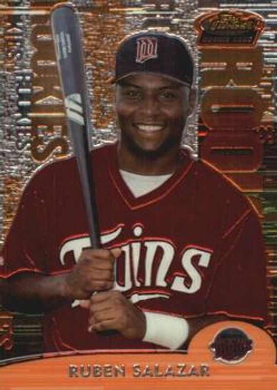 Ruben Salazar's Baseball cards are available in at least 8 sets. Ruben Salazar's biggest 7-day price movers are 2000 Topps Finest #119 Base, 2000 Topps Finest #119 Refractor /1000, and 2000 Topps Finest #119 Gold Refractor /100.