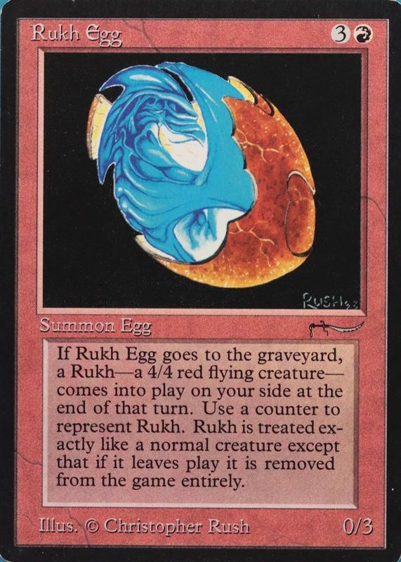 Rukh Egg's Magic: The Gathering cards are available in at least 1 sets. Rukh Egg's biggest 7-day price movers are 1993 Arabian Nights Base (Light), and 1993 Arabian Nights Base (Dark).