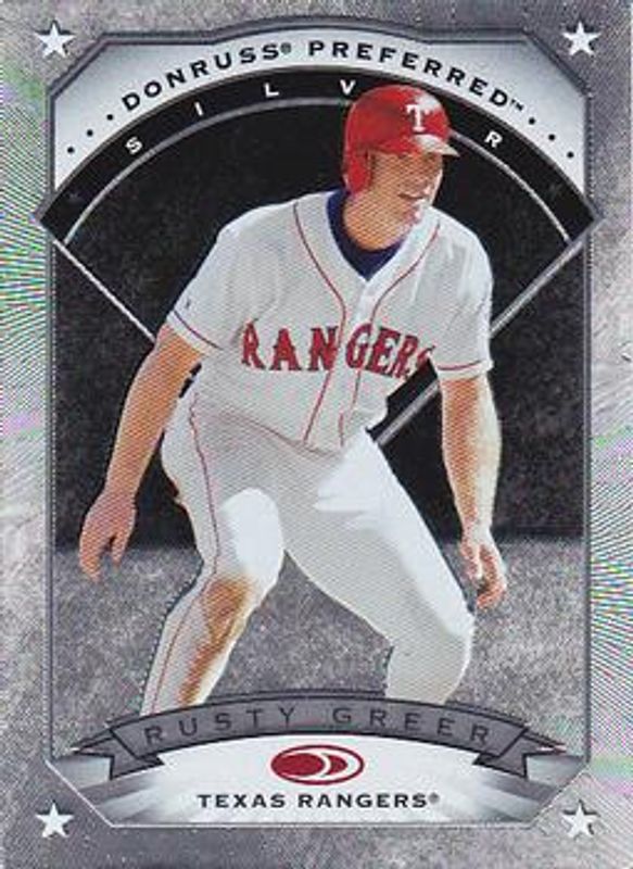 Rusty Greer's Baseball cards are available in at least 43 sets. Rusty Greer's biggest 7-day price movers are 1997 Donruss Preferred #76 Base, 1997 Donruss Preferred #76 Cut to the Chase, and 2000 Topps Finest #8 Base.