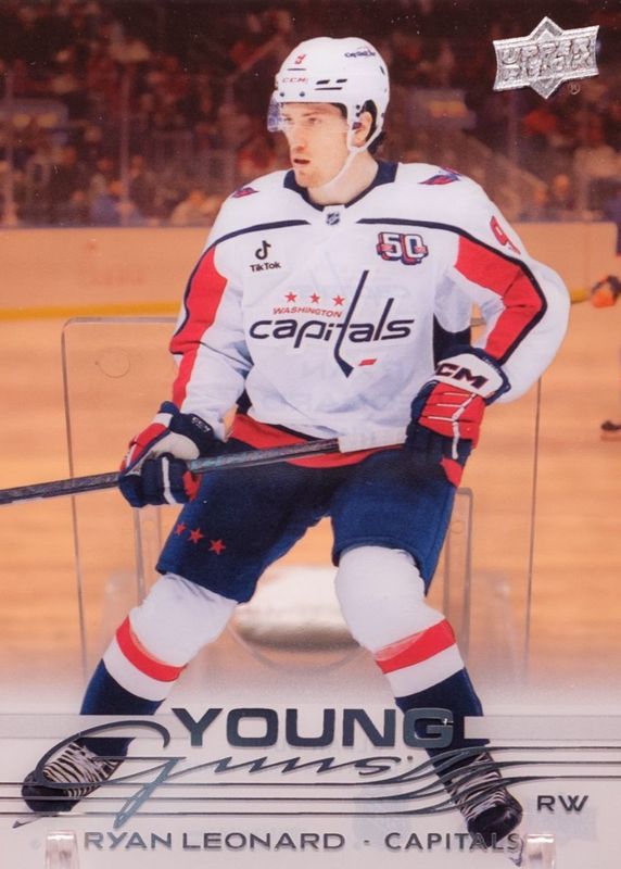 Ryan Leonard's Hockey cards are available in at least 3 sets. Ryan Leonard's biggest 7-day price movers are 2025 Upper Deck #238 Young Guns Base, 2025 Upper Deck #238 Young Guns - Clear Cut, and 2025 Upper Deck #238 Young Guns - Deluxe /250.
