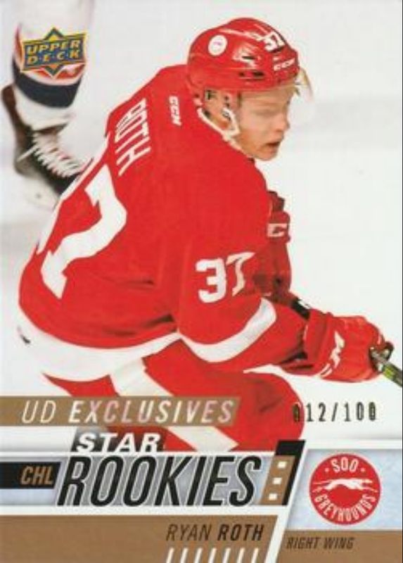 Ryan Roth's Hockey cards are available in at least 2 sets. Ryan Roth's biggest 7-day price movers are 2017 Upper Deck CHL #362 UD Exclusives /100, 2017 Upper Deck CHL #362 High Gloss /10, and 2017 Upper Deck CHL #362 Printing Plates Cyan /1.