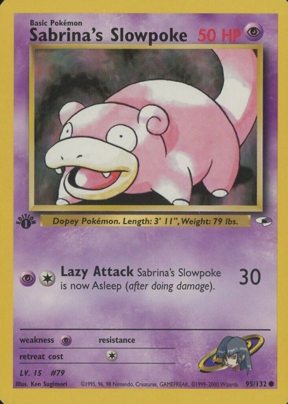 Sabrina's Slowpoke's Pokemon cards are available in at least 1 sets. Sabrina's Slowpoke's biggest 7-day price movers are 2000 Gym Heroes #095/132 1st Edition.
