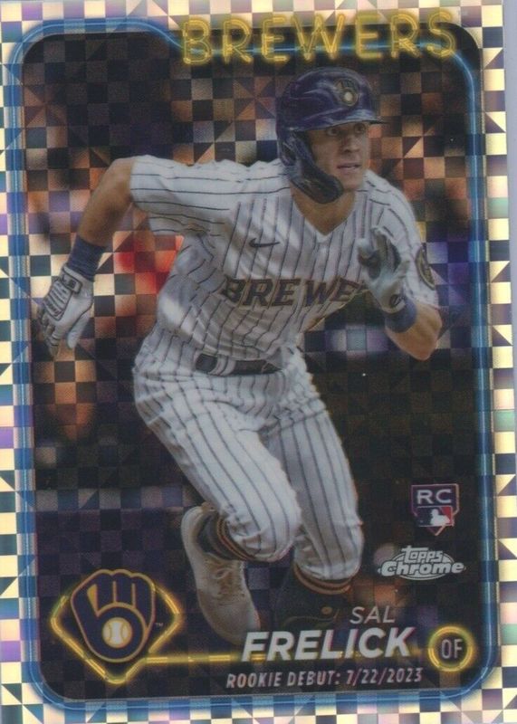 Sal Frelick's Baseball cards are available in at least 64 sets. Sal Frelick's biggest 7-day price movers are 2024 Bowman Chrome #BC25-10 1999 Bowman Chrome 25th Anniversary, 2021 Bowman Draft #BDC-172 Chrome - Refractor (1st), and 2024 Topps Chrome #39 Base.