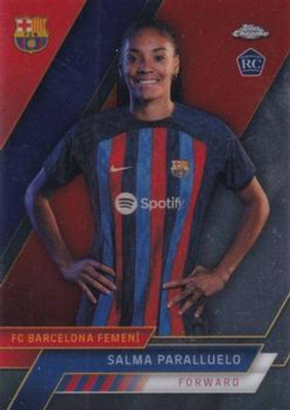 Salma Paralluelo's Soccer cards are available in at least 22 sets. Salma Paralluelo's biggest 7-day price movers are 2022 Topps Chrome FC Barcelona: Mes Que Un Club #3 Base, 2022 Topps Chrome FC Barcelona: Mes Que Un Club #AU-PA Card Autographs - Gold /50, and 2022 Topps Chrome FC Barcelona: Mes Que Un Club #53 Base.