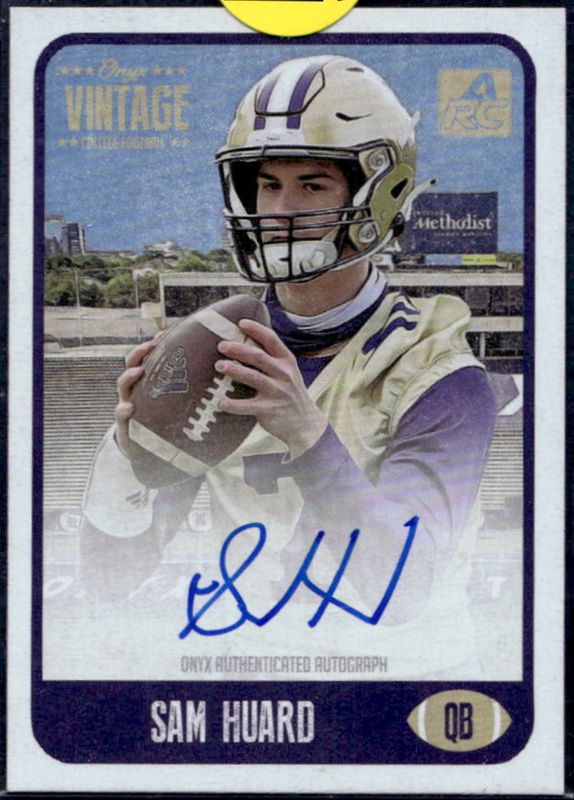 Sam Huard's Football cards are available in at least 1 sets. Sam Huard's biggest 7-day price movers are 2021 Onyx Vintage College Football #CASA Blue Signatures /500, 2021 Onyx Vintage College Football #CASA Green Signatures /50, and 2021 Onyx Vintage College Football #CASA Black Signatures /5.