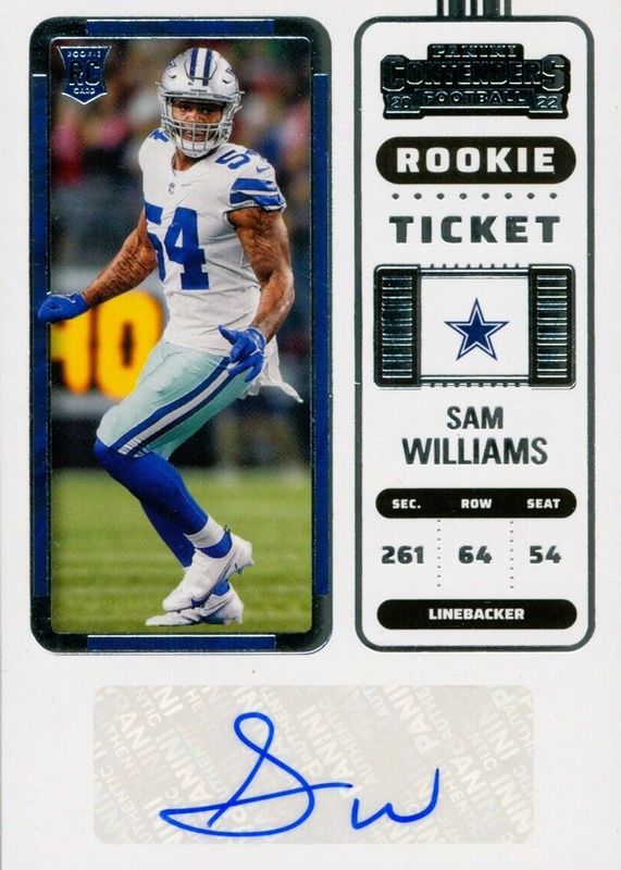 Sam Williams' Football cards are available in at least 1 sets. Sam Williams' biggest 7-day price movers are 2022 Contenders #174 Rookie Ticket Auto, and 2022 Contenders #174 Rookie Ticket Auto Variation.