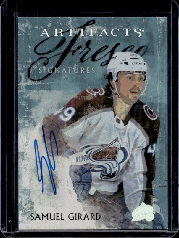 Samuel Girard's Hockey cards are available in at least 34 sets. Samuel Girard's biggest 7-day price movers are 2024 Upper Deck Artifacts #FS-SG Fresco Signatures, 2024 SP Game Used #90 Base Autographs - Rainbow Foil /1, and 2024 SP Game Used #90 Base Jersey - Red.