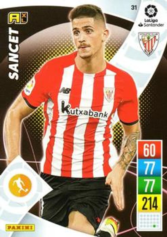 The biggest 30-day change Sancet cards are 2021 Panini Adrenalyn XL LaLiga Santander #31 Base, 2025 Topps UEFA Club Competitions #195 Blue Foil /150, and 2025 Topps UEFA Club Competitions #195 Black Holo /10.