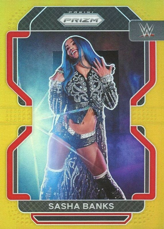 Sasha Banks' Wrestling cards are available in at least 12 sets. Sasha Banks' biggest 7-day price movers are 2022 Prizm WWE #102 Gold /10, 2022 Select WWE #AM-SBK Autographed Memorabilia Gold /10, and 2022 Select WWE #285 Black & Gold /1.