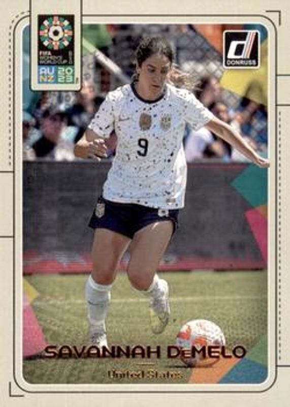 Savannah DeMelo's Soccer cards are available in at least 12 sets. Savannah DeMelo's biggest 7-day price movers are 2023 Donruss FIFA Women's World Cup #185 Base, 2023 Donruss FIFA Women's World Cup #185 Pink /23, and 2023 Donruss FIFA Women's World Cup #185 Red /299.