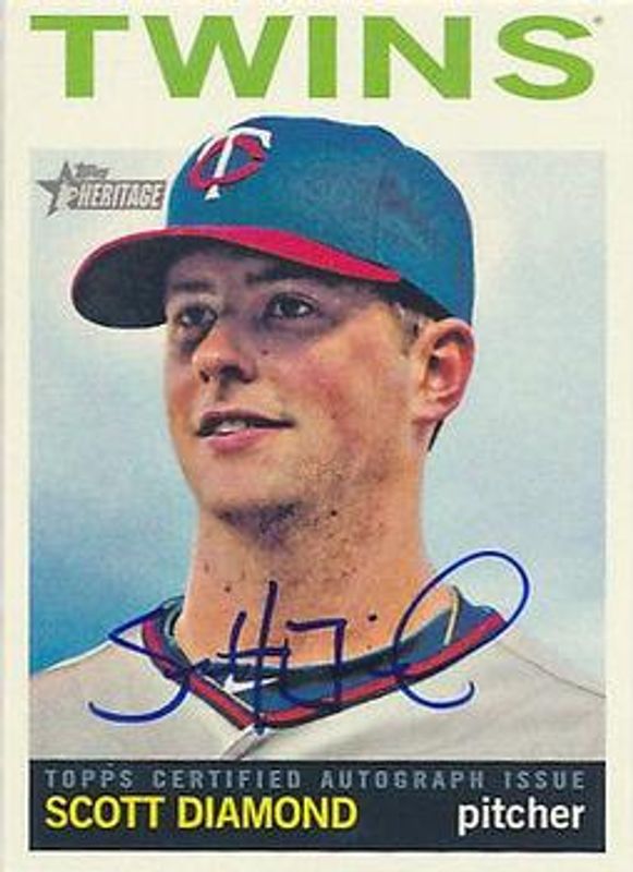 Scott Diamond's Baseball cards are available in at least 2 sets. Scott Diamond's biggest 7-day price movers are 2013 Topps Heritage #ROA-SD Real One Autographs, 2013 Topps Heritage #ROA-SD Real One Autographs - Red Ink /64, and 2013 Topps Heritage #495 Venezuelan.