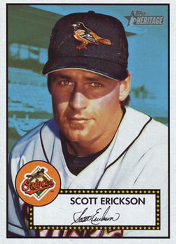 Scott Erickson's Baseball cards are available in at least 40 sets. Scott Erickson's biggest 7-day price movers are 2001 Topps Heritage #343 Base, 1994 Pinnacle Select #171 Base, and 1991 Topps #234 Base.