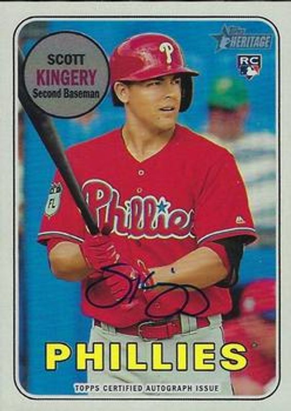 Scott Kingery's Baseball cards are available in at least 24 sets. Scott Kingery's biggest 7-day price movers are 2018 Topps Heritage #ROA-SK Real One Autographs High Number, 2018 Topps Heritage #17 1969 Topps Deckle High Number, and 2018 Topps Heritage #ROA-SK Real One Autographs High Number - Red Ink /69.