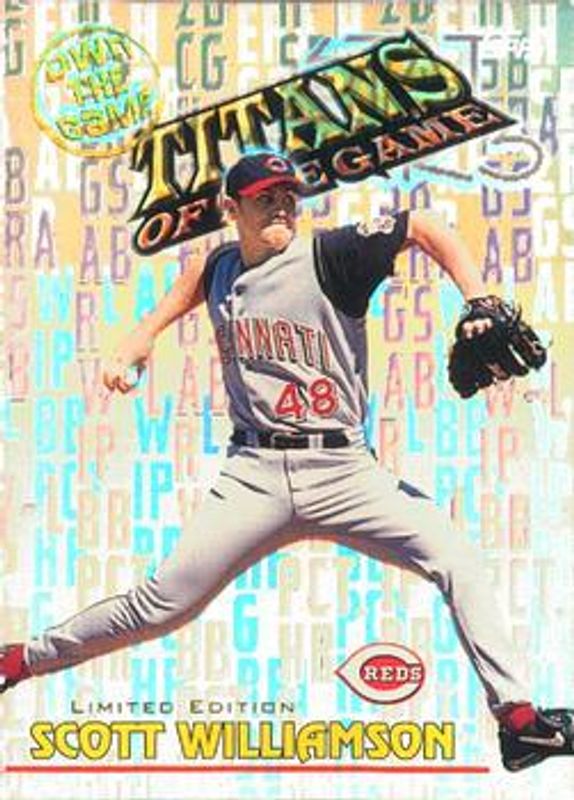 Scott Williamson's Baseball cards are available in at least 13 sets. Scott Williamson's biggest 7-day price movers are 2000 Topps #OTG25 Limited Own the Game, 2000 Topps #OTG25 Own the Game, and 2000 Topps #151 Limited Edition /4000.