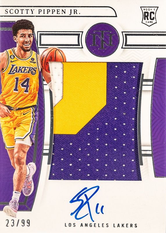 Scotty Pippen Jr.'s Basketball cards are available in at least 18 sets. Scotty Pippen Jr.'s biggest 7-day price movers are 2022 Prizm #SS-SP Sensational Signatures, 2022 National Treasures #150 Rookie Patch Auto /99, and 2022 Prizm #232 Mojo /25.