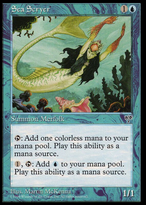 Sea Scryer's Magic: The Gathering cards are available in at least 1 sets. Sea Scryer's biggest 7-day price movers are 1996 Mirage Base.