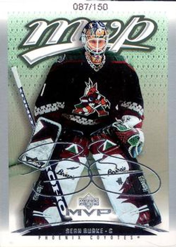 Sean Burke's Hockey cards are available in at least 82 sets. Sean Burke's biggest 7-day price movers are 1996 Fleer #2 Vezina Trophy, 2001 In The Game Be a Player Memorabilia #83 2001 In The Game Be a Player Memorabilia, and 2001 In The Game Be a Player Memorabilia #83 Ruby /200.