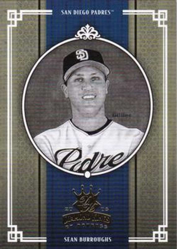 Sean Burroughs' Baseball cards are available in at least 19 sets. Sean Burroughs' biggest 7-day price movers are 2005 Diamond Kings #185 Black & White, 2005 Diamond Kings #185 Framed Black Platinum /1, and 2005 Diamond Kings #185 Framed Black /25.