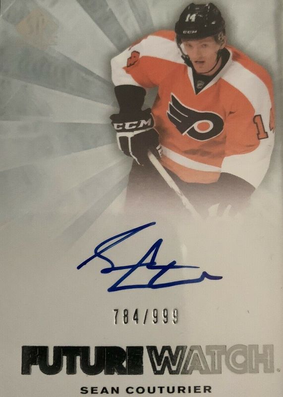 Sean Couturier's Hockey cards are available in at least 63 sets. Sean Couturier's biggest 7-day price movers are 2011 SP Authentic #246 Future Watch Auto /999, 2013 National Treasures #557 2011 Score: - Printing Plates Magenta /1, and 2013 National Treasures #557 2011 Score: - Printing Plates Yellow /1.