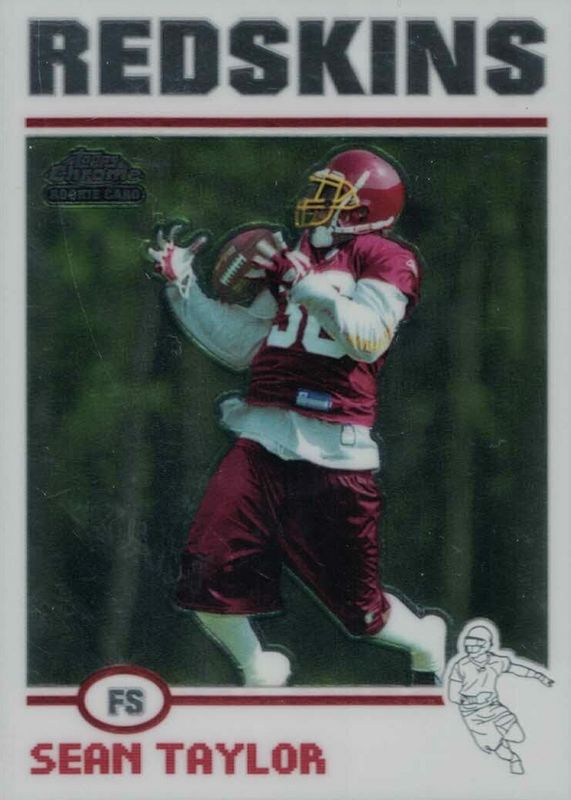 Sean Taylor's Football cards are available in at least 22 sets. Sean Taylor's biggest 7-day price movers are 2004 Topps Chrome #202 Base, 2025 Prizm #19 Color Blast /(SSP), and 2022 Donruss #DT-ST Downtown /(SSP).