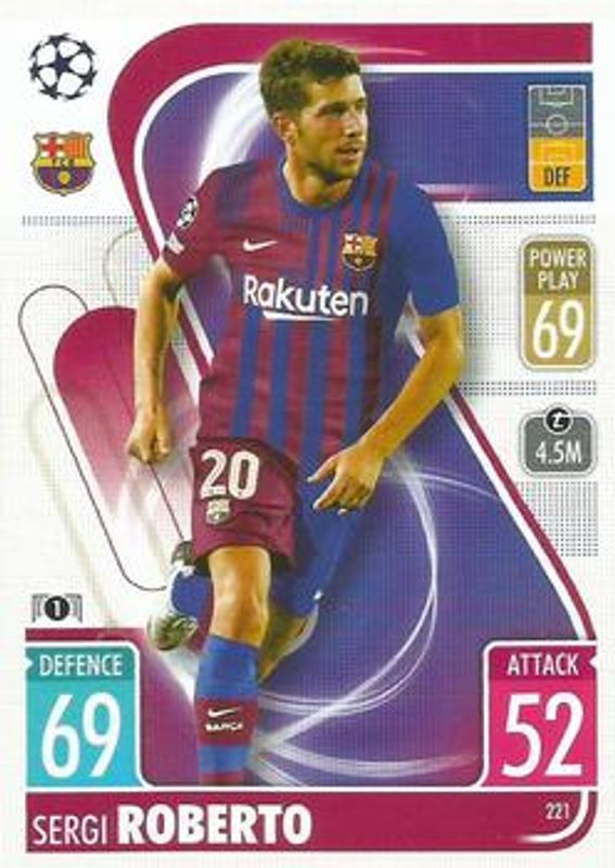 Sergi Roberto's Soccer cards are available in at least 21 sets. Sergi Roberto's biggest 7-day price movers are 2021 Topps Match Attax Champions & Europa League #221 Base, 2021 Topps Match Attax Champions & Europa League #221 Crystal, and 2022 Topps Match Attax UEFA Champions League & UEFA Europa League #149 Crystal.