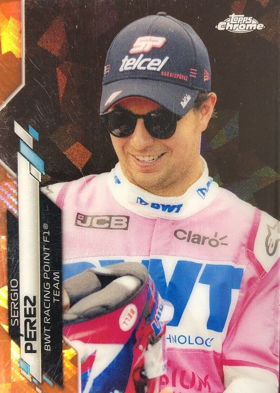 Sergio Perez's Racing cards are available in at least 20 sets. Sergio Perez's biggest 7-day price movers are 2020 Topps Chrome Formula 1 Sapphire Edition #186 F1 Racers - Orange /25, 2021 Topps Formula 1 #AP-SP Apex Predators Printing Plates Yellow /1, and 2021 Topps Formula 1 #FF-SP Flags of Foundation Gold /50.