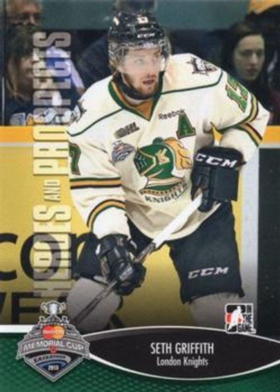 Seth Griffith's Hockey cards are available in at least 12 sets. Seth Griffith's biggest 7-day price movers are 2012 In The Game Heroes & Prospects #MC-08 2013 Memorial Cup, 2012 In The Game Heroes & Prospects #SSM-14 Subway Super Series Jersey Patches, and 2012 In The Game Heroes & Prospects #SSMA-SG Subway Super Series Jersey Autographs Gold.