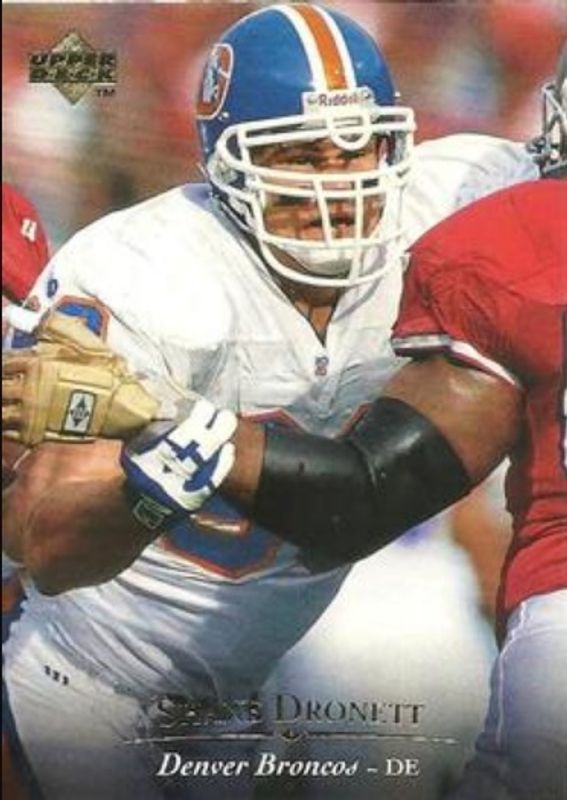 Shane Dronett's Football cards are available in at least 6 sets. Shane Dronett's biggest 7-day price movers are 1995 Upper Deck #138 Base, 1995 Upper Deck #138 Electric Gold, and 1995 Upper Deck Collector's Choice #144 Base.